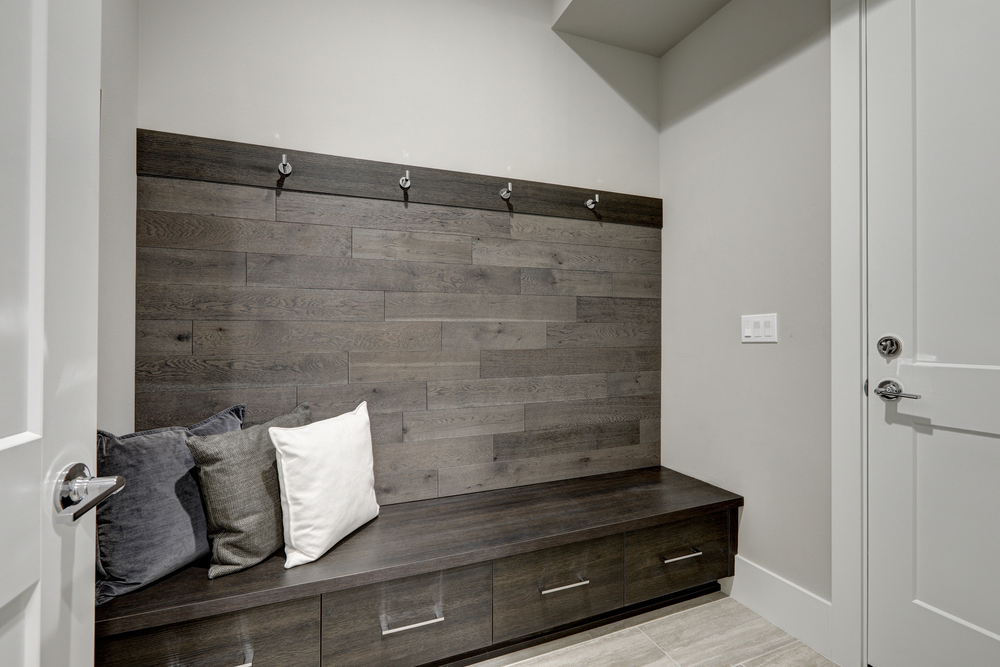 Этот стиль не терпит вычурности — вместо банального гарнитура на стене может быть всего несколько крючков и одна-две полки, а для хранения обуви можно приспособить старый комод.