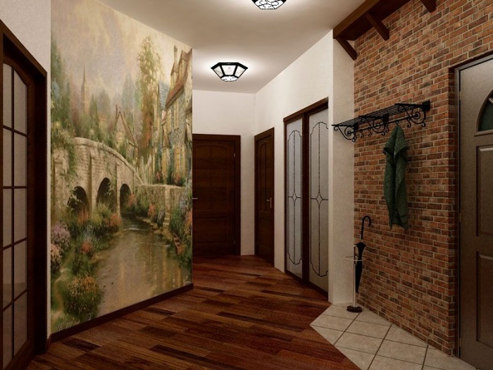 Если говорить о цветах вообще, то использовать можно любые. Даже темные. Но они хорошо смотрятся в просторных помещениях с обилием света. И одно условие: пестроты и мелкого рисунка лучше избегать. Они делают помещение еще мельче. Если ваш коридор маленький и узкий, то придется вам выбирать из светлых, нейтральных тонов, причем с неярко выраженным рисунком.