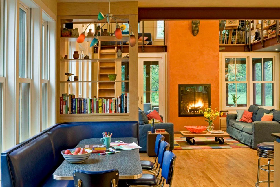 Оранжевый цвет обладает способностью визуально согревать помещение, делать его более светлым