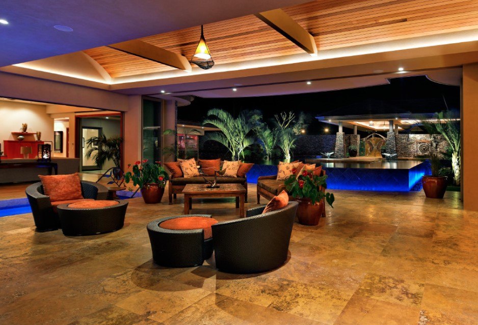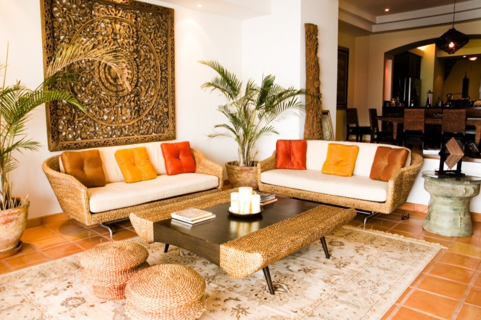 В этнических дизайнах яркий апельсиновый — частый гость. Это свойственно и набирающему в последнее время обороты средиземноморскому стилю, и все еще редким у нас африканским интерьерам.