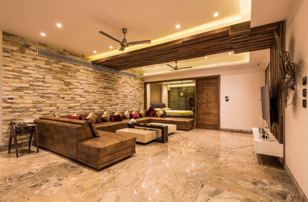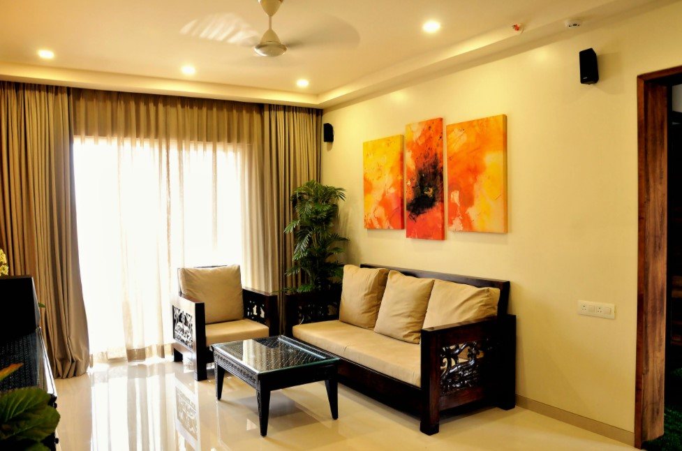 - Бежево-оранжевая гостиная