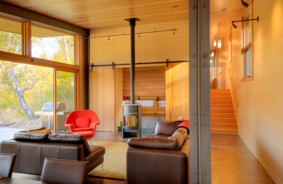 Для этого стиля свойственна универсальность во всем, в частности, в практичности и простоте окружающих деталей и аксессуаров.